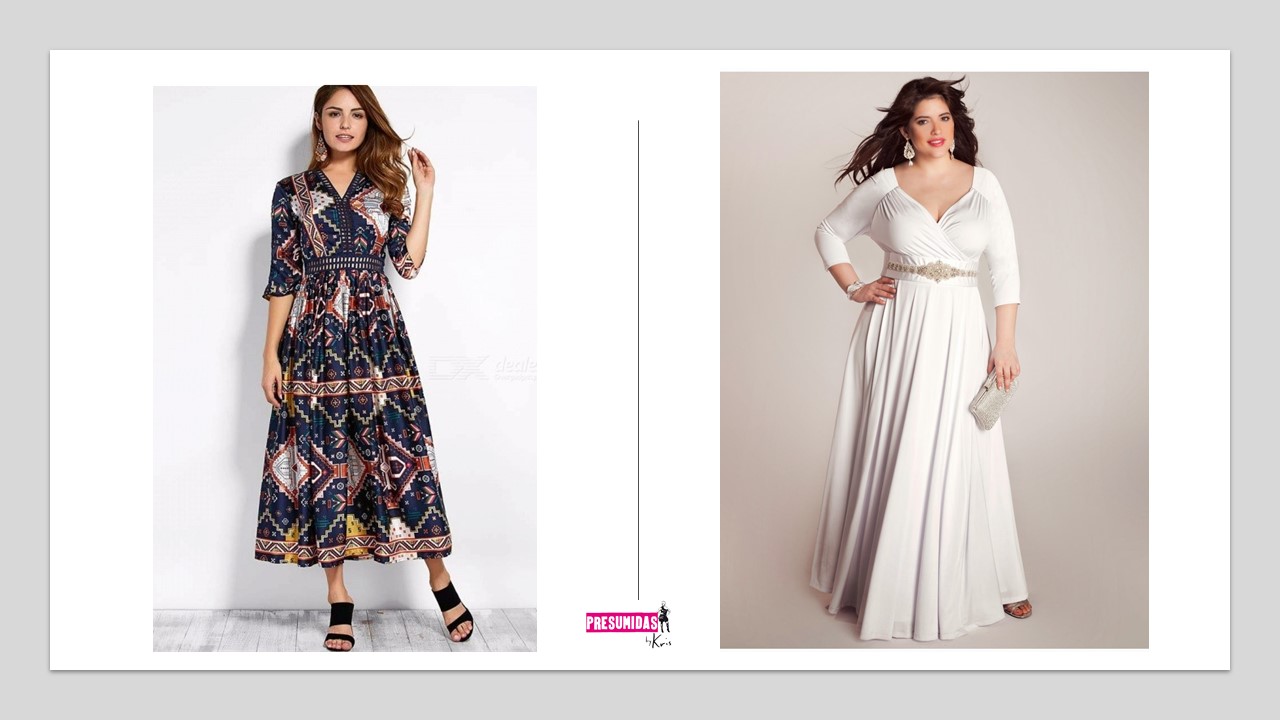 Este tipo de vestidos es para las mujeres que son de cintura fina pero con piernas muy anchas, al tener vuelo en la parte de abajo evitarás marcarlas.