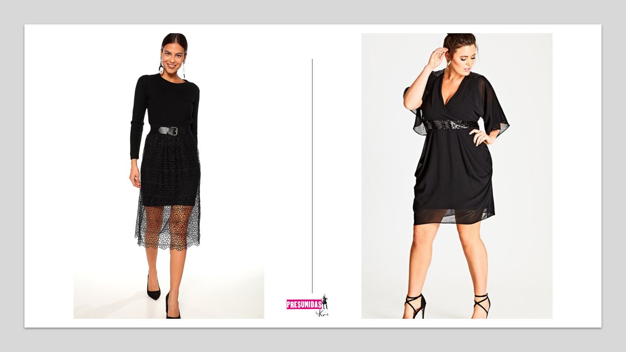 Aquí poco os puedo decir. Como bien sabéis el color negro disimula mejor esos kilos de más haciéndonos parecer más delgadas. Lo que habrá que tener en cuenta serán los volúmenes y el tejido también.