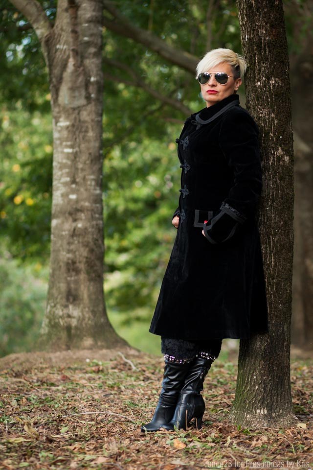 De este abrigo me enamoré . Un abrigo de algodón aterciopelado negro muy elegante y un aire podríamos decir gótico.