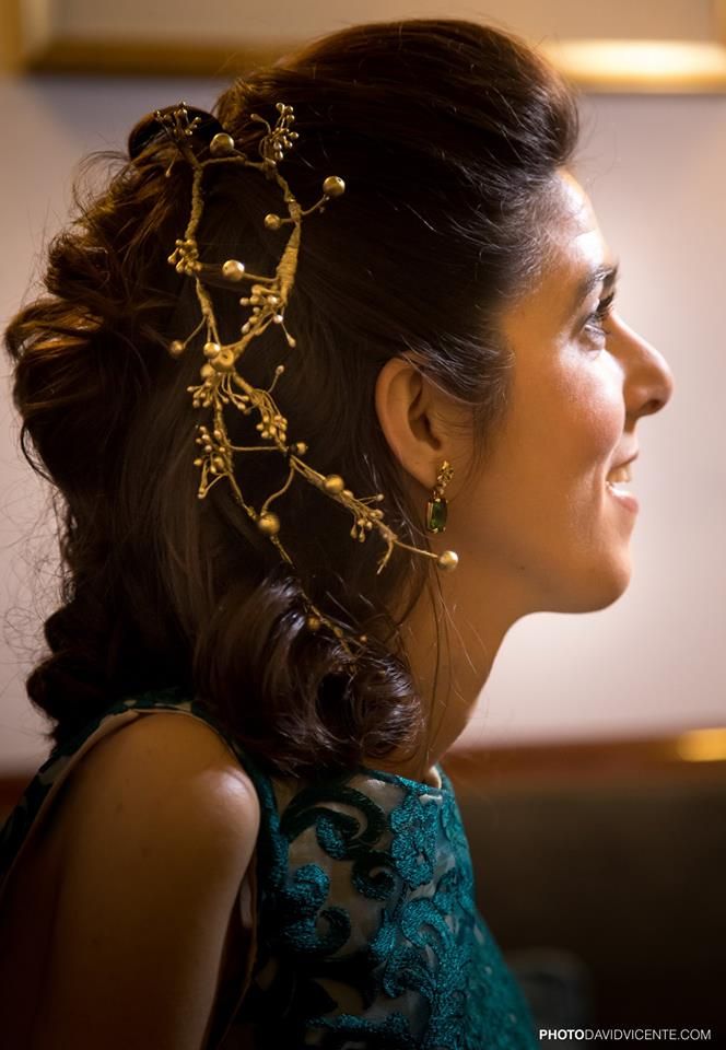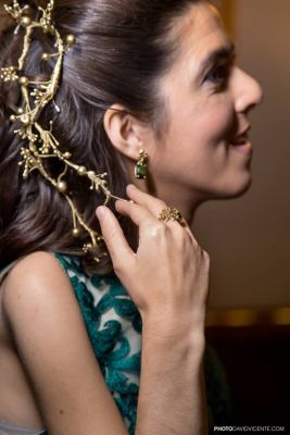 Un vestido rojo con escote de corazón de Arantxa Celaya, que junto a las joyas, tocado, peinado y maquillaje Marta lucía como una hermosa princesa.