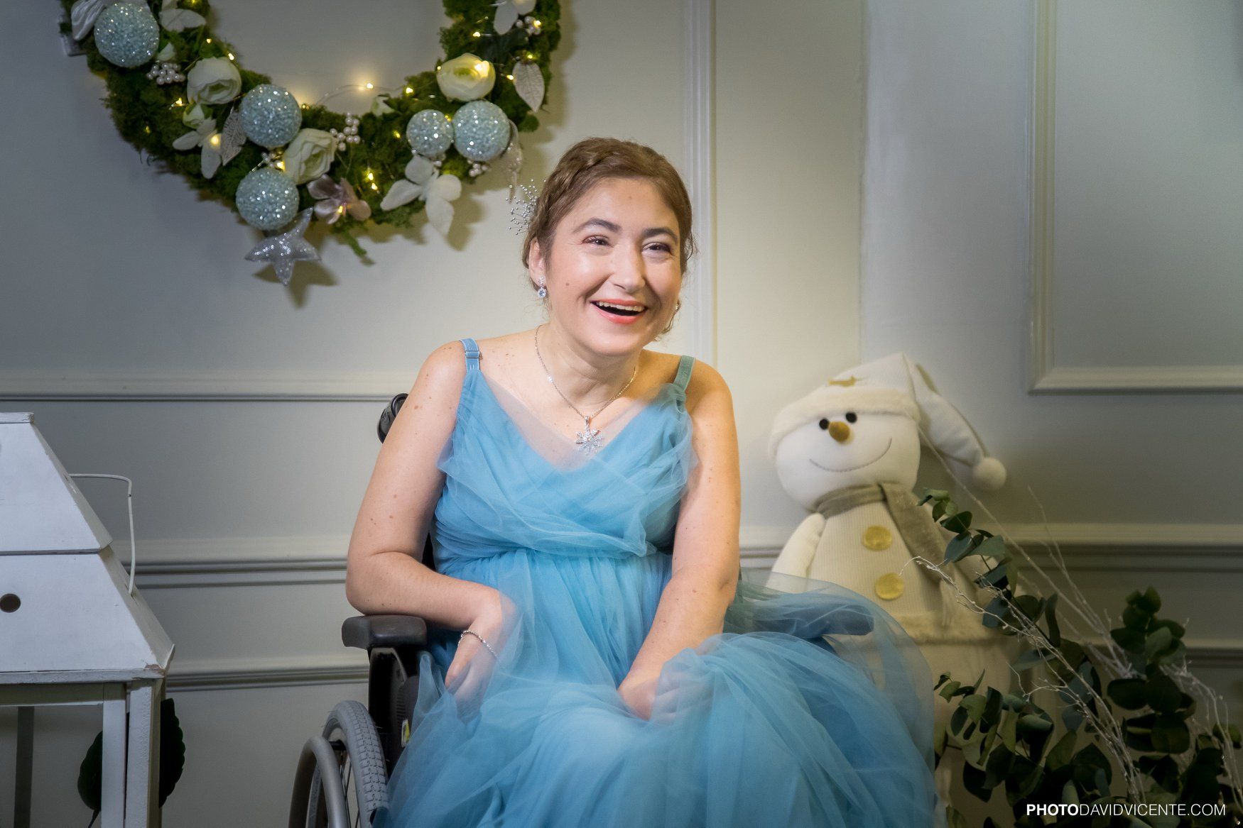 Arantxa Vidales tiene 47 años. Una mujer que me dejó cautivada por su sonrisa. Dulce, cariñosa y con una felicidad que es admirable. Arantxa es toda ternura. Muy Presumida también que a pesar de no ver, con el tacto ella sabía qué vestido le gustaba y lo eligió bien, porque le gustó el que mejor encajaba con su personalidad dulce y sensible. Princesa, no dejes de sonreír porque aunque tú no lo veas, nos haces sonreír a los demás.