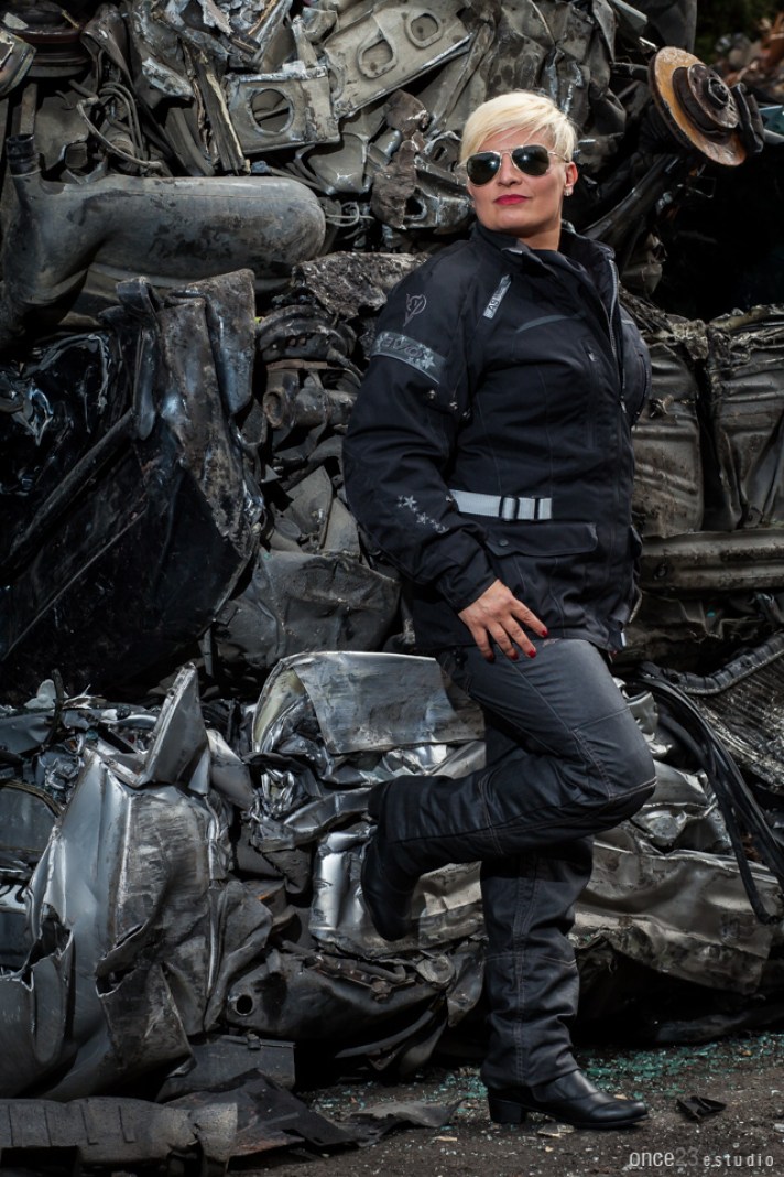 En estas imágenes os mostramos un pantalón vaquero con protecciones, ideal para ir protegida en la moto y a la vez con otro calzado poderlo utilizar por la ciudad. Ideal para viajes, así evitaremos meter otra prenda de cambio. ????