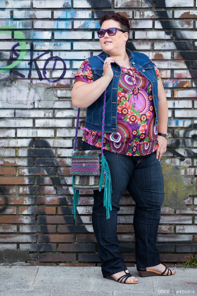 Comenzamos con un look denim con aire hippy, tendencia esta temporada.